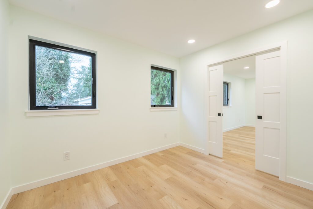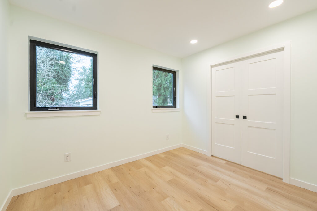 This Seattle WA completed DADU includes several amenities and enhancements. Hardie cement fiber siding, stained soffits at entry, a long lasting metal roof and a beautifully landscaped yard with stone pathways, stone terraced beds, and artificial turf.